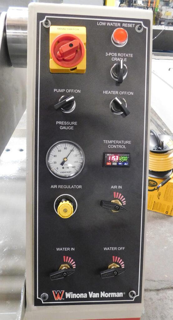 The Winona Van Norman CHTX pressure tester machine emulates a running engine for heads and blocks. Using high temperature and high internal pressure through the workpiece enables you to detect the smallest hairline cracks. Big enough for Cummins ISX