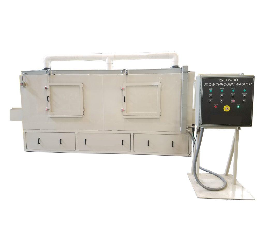 The Winona Van Norman 12-FTW Flow Through Washer is a high-capacity, automated cleaning system specifically designed for engine remanufacturing, automotive, and heavy-equipment production environments. Its 12-foot insulated wash chamber, equipped with precision-angled high-pressure spray nozzles, delivers complete 360-degree cleaning, effectively removing oil, grease, carbon, and debris from large or multiple components in a single pass. The heavy-duty conveyor ensures smooth, continuous movement of parts through wash, rinse, and blow-off stages, maintaining a seamless workflow that minimizes handling time and maximizes throughput.