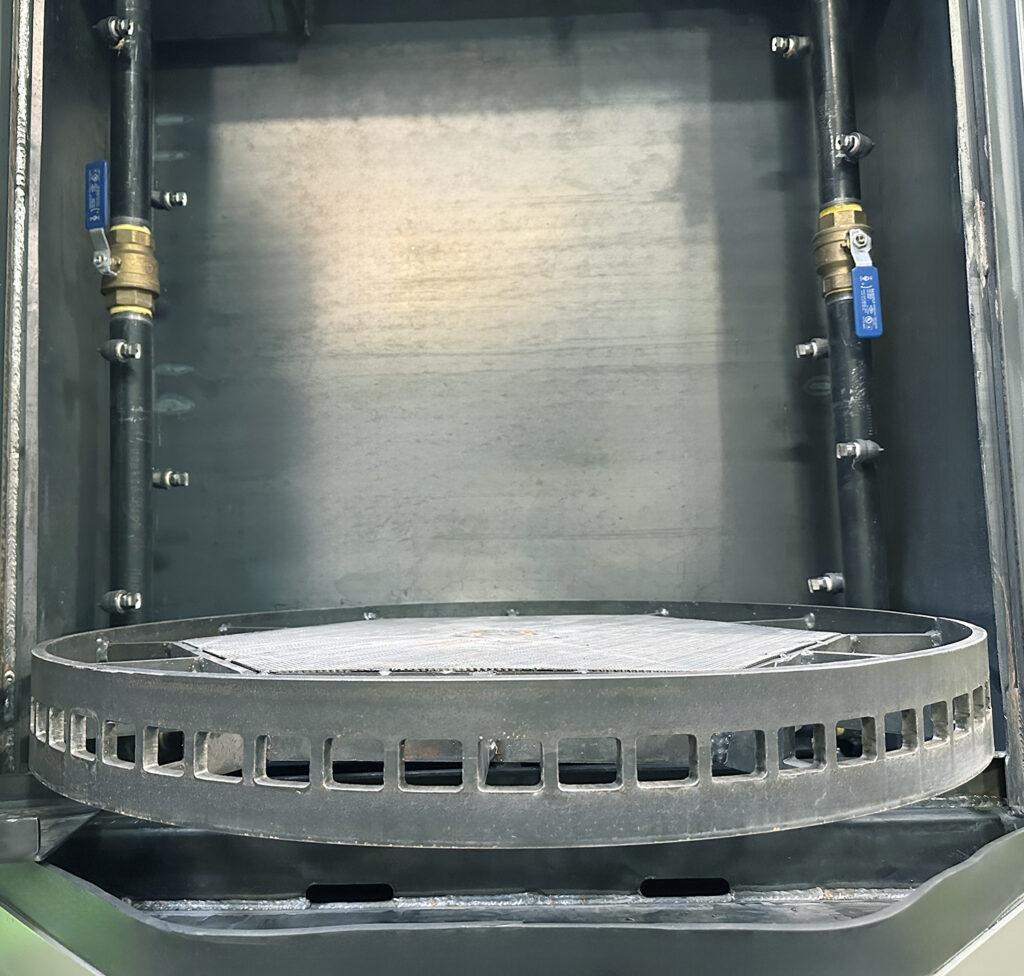 The WVN-5000 is a state-of-the-art rotary washer that cleans large engine parts and a variety of smaller parts after machining. Parts are positioned on a rotating turntable where jets of hot water spray from the top, sides and bottom and detergent quickly removes grease, oil and dirt.